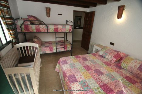 - Habitación 4: Cama matrimonio, 2 camas individuales y 1 cuna